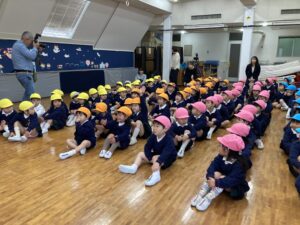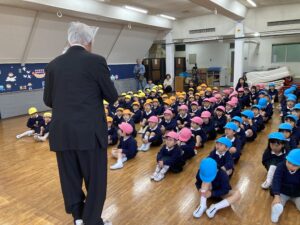 幼稚園座りもかっこよく、お背中までピーンと伸ばして、進級した姿を園長先生に見ていただき、みんな立派に進級しました。