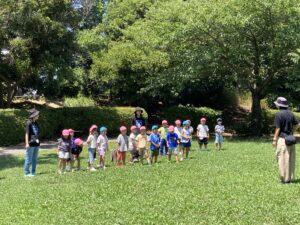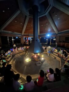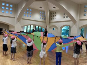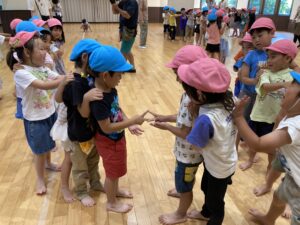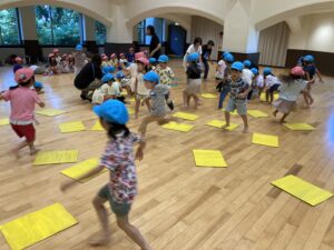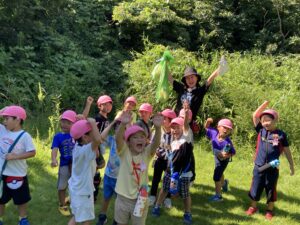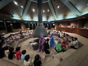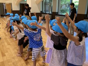 今年は【上郷森の家】でお泊まり会を行いました。まず、港南台にある「子ども宇宙科学館」でプラネタリウムを見た後に、上郷森の家にむかい、外で宝探しをして見つけた宝物の水鉄砲やシャボン玉で遊んだり、クーラーのきいた涼しいお部屋でバルーンをして遊んだり、キャンプファイヤーをしたり…と1泊2日、目一杯遊んでくることが出来ました!