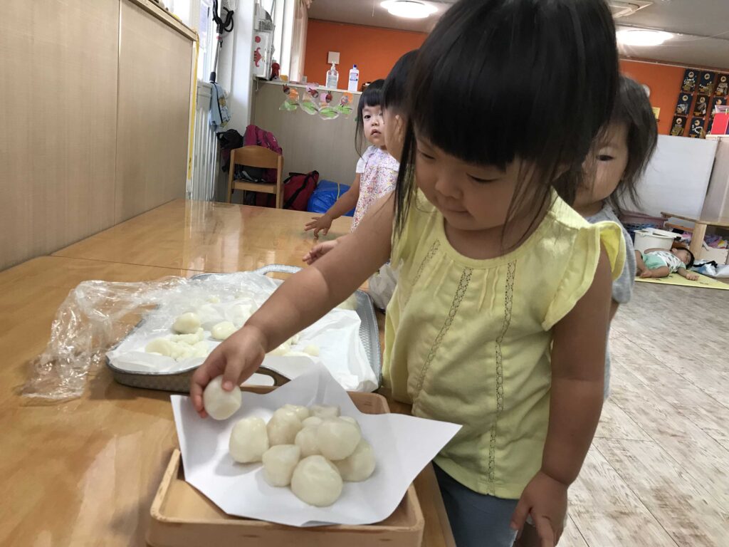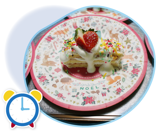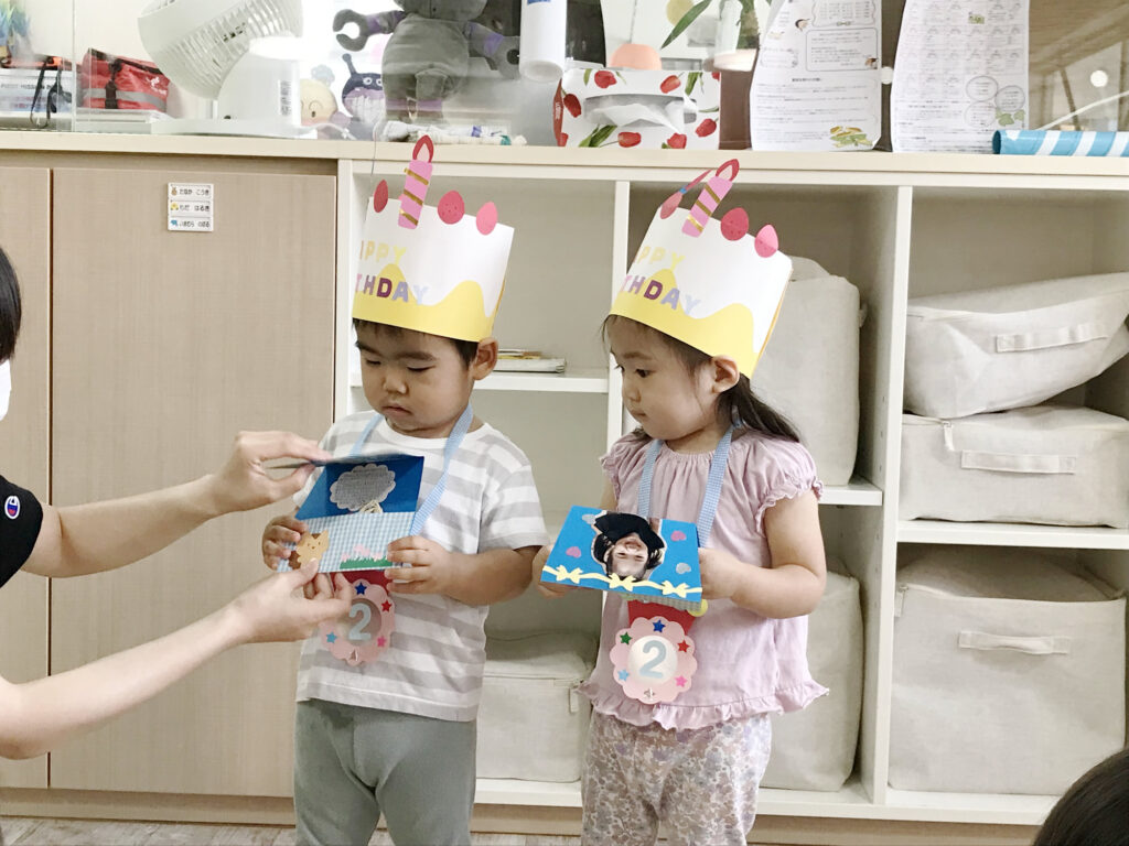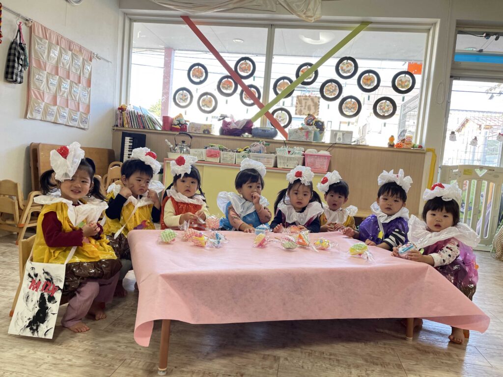 給食と同様、行事の日は行事にちなんだデザートとなっており、お誕生会の日は手作りケーキでお祝いします。