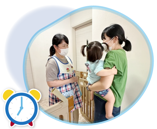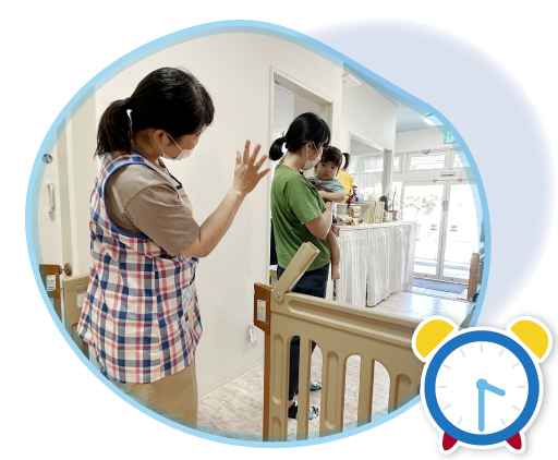 お迎えに来られた保護者に一日の様子をお伝えし、一日が終了。